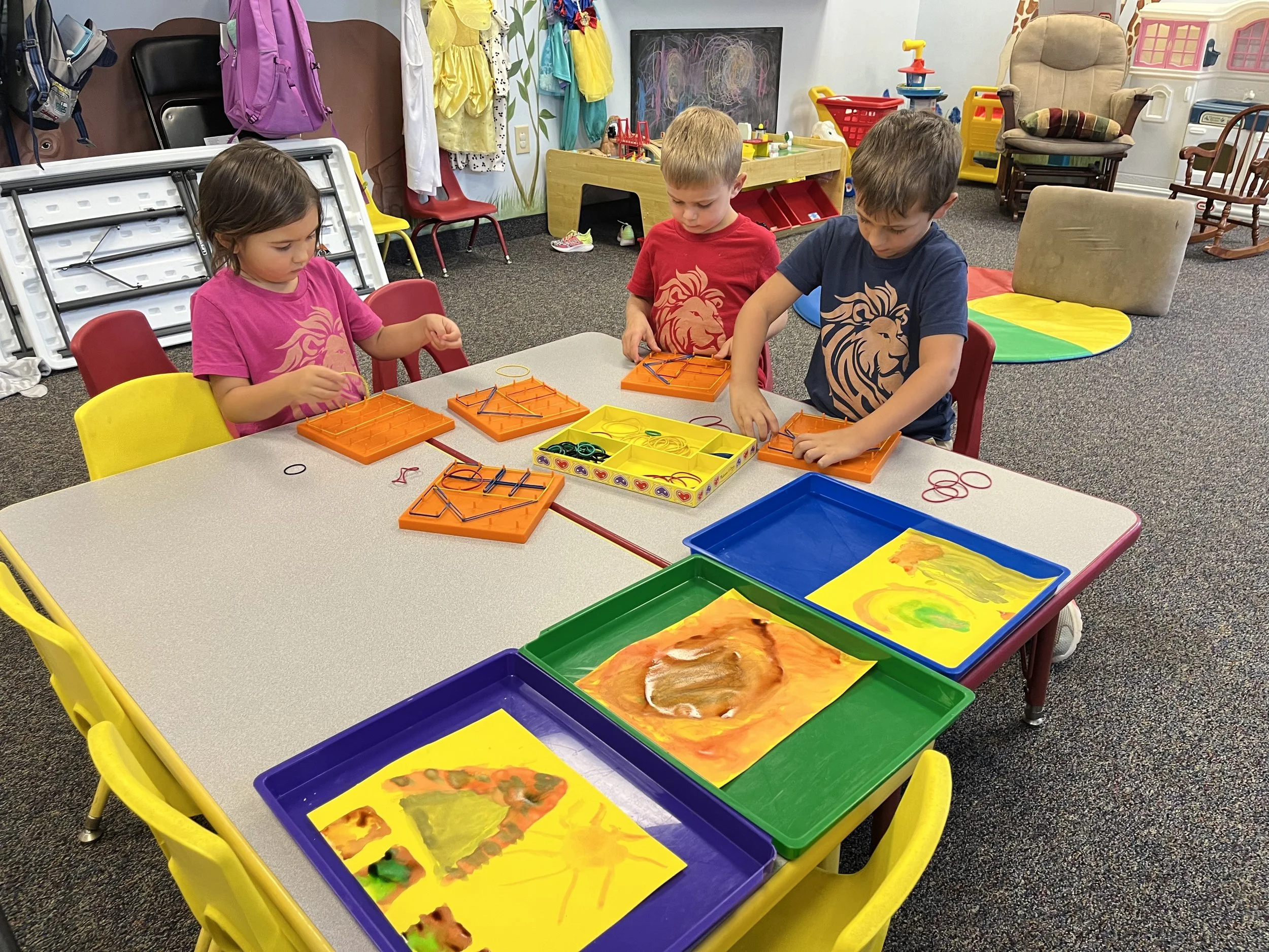 Little Lions have ample opportunities to develop peer-to-peer communication skills, begin the journey of memorizing God’s Word along with poetry, and are exposed to letter sounds, recognition, and formation. Basic math skills are also introduced.